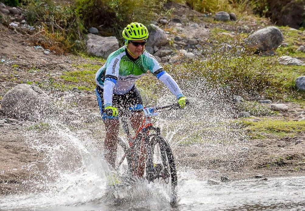 El mountain tuvo su torneo y consagró a 13 monarcas. En la imagen, Norberto Patiño, quien ganó la categoría C1 (50 a 54 años) atraviesa un arroyo.