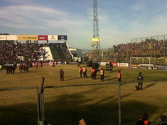 San Juan, 1 de julio.- Esta tarde, una vez finalizado el primer tiempo entre San Martín y Rosario Central, se registraron incidentes en una de las tribunas del Hilario Sánchez.