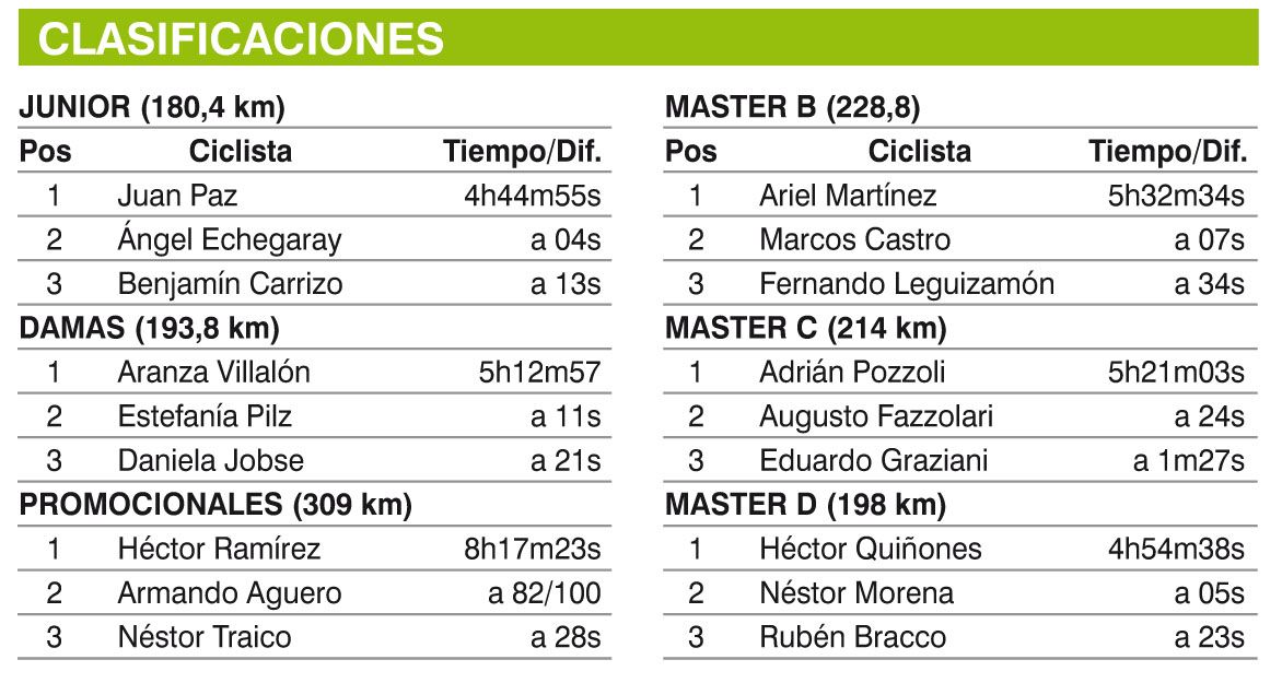 Entre los Master D, el santafesino Héctor Quiñones destronó a Héctor Moriones. La etapa la ganó Rubén Bracco. El mejor sanjuanino fue Juan José Gómez, cuarto.