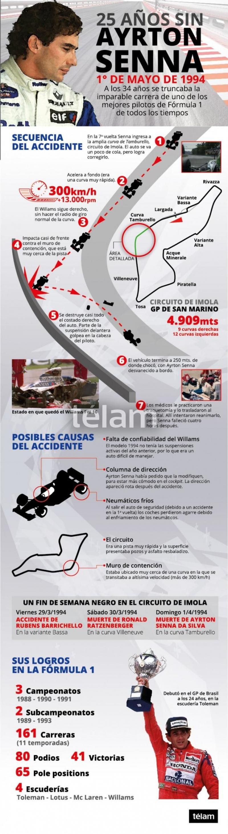 Después llegó el fatídico 1 de mayo de 1994, en la tercera fecha del calendario de la F1, el Gran Premio de San Marino, disputado en Imola, Italia. Ayrton Senna, se estrelló con su Williams contra el paredón de la curva Tamburello.