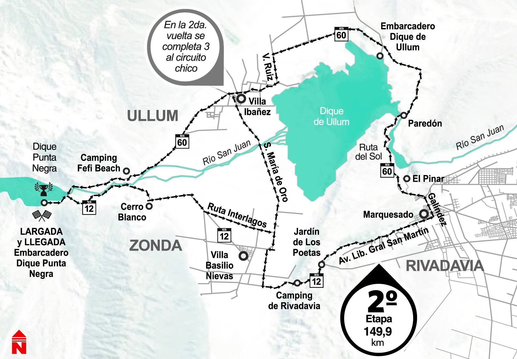 La segunda etapa de la Vuelta a San Juan será, a decir de los especialistas, una verdadera prueba que separará seguramente a aquellos que tienen serias posibilidad de hacerse con la carrera. Es que por ser un circuito con pendiente en buena parte del trayecto, las piernas sentirán el rigor del esfuerzo en un día que tiene al calor como protagonista.