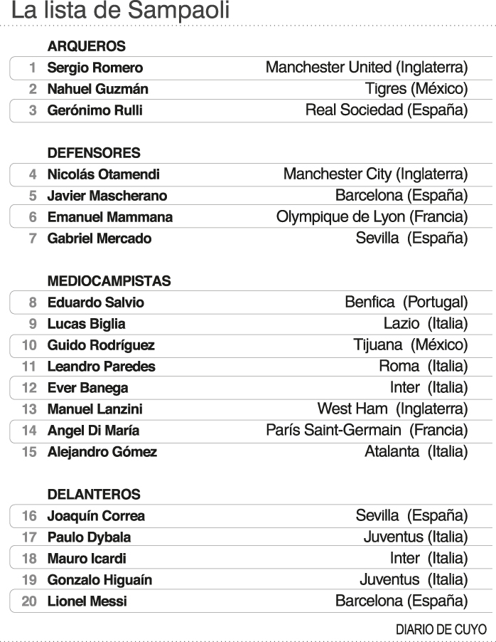 A los arqueros Romero y Guzmán, se le sumará Rulli, de la Real Sociedad y quien atajó en los Juegos Olímpicos de Río 2014.