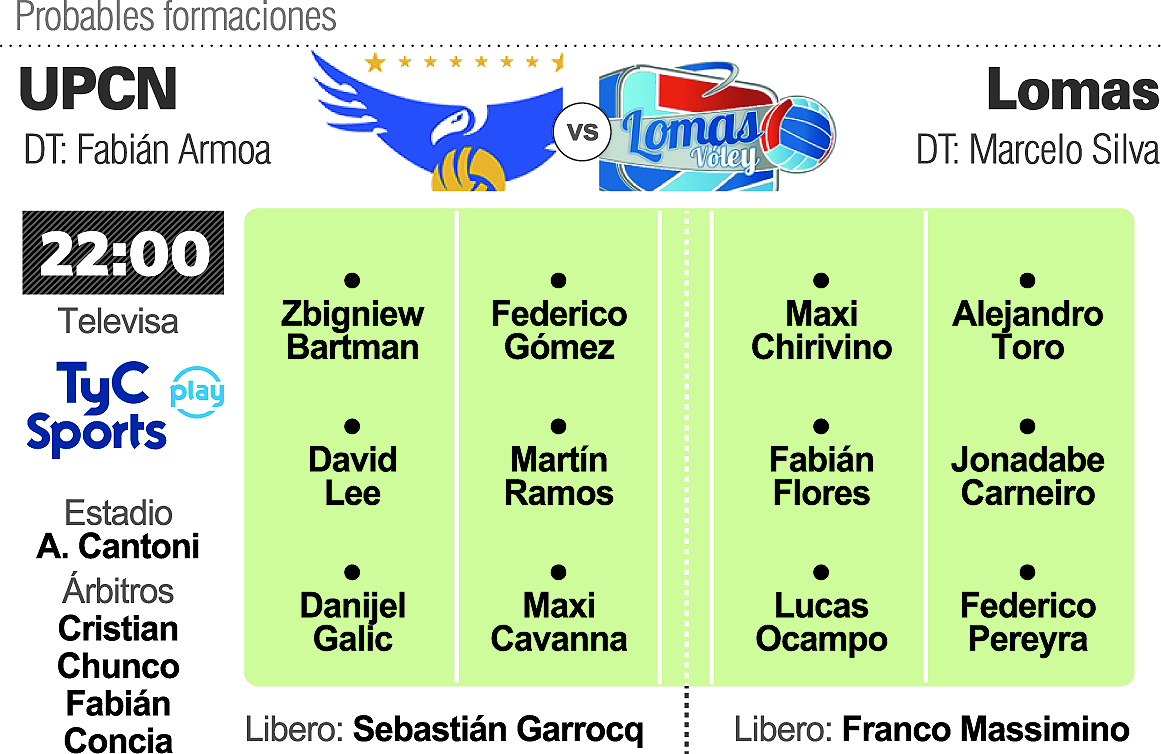 Dos candidatazos al título se miden desde esta noche por un lugar en la lucha por el título. Se trata de una serie que tranquilamente podría ser una final, pero los play off determinaron que sea un escalón antes. Desde las 22, UPCN San Juan Voley y Lomas Voley protagonizarán la apertura del cruce de semifinales de la Liga Argentina de Clubes, prevista al mejor de cinco encuentros, en un imperdible duelo que se desarrollará en el estadio Aldo Cantoni.
