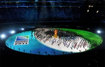 El foco que se buscó fue un viaje desde todos los rincones de la Tierra hasta llegar a Nueva Zelanda, con los equipos listos para la batalla por el premio final de rugby. Fue una imponente puesta en escena que duró media hora sobre el estadio Eden Park, de Auckland, de la cual participaron casi 1000 personas.