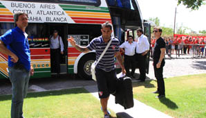El plantel del Rojo se instaló en el hotel santaluceño Viñas del Sol, pero antes, durante su ingreso, fue recibido por decenas de fanáticos sanjuaninos que se agolparon detrás de las vallas. Con cánticos y palabras de aliento, apoyaron al principal candidato a lograr el ascenso a Primera.