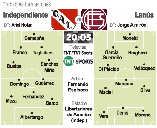 Independiente viene de eliminar a Atlético Tucumán en la Copa Sudamericana y de alcanzar los cuartos de final de esa competencia continental, mientras que Lanús perdió el miércoles 2-0 ante San Lorenzo en la ida de los cuartos de final de la Copa Libertadores y suma dos derrotas en la Superliga.