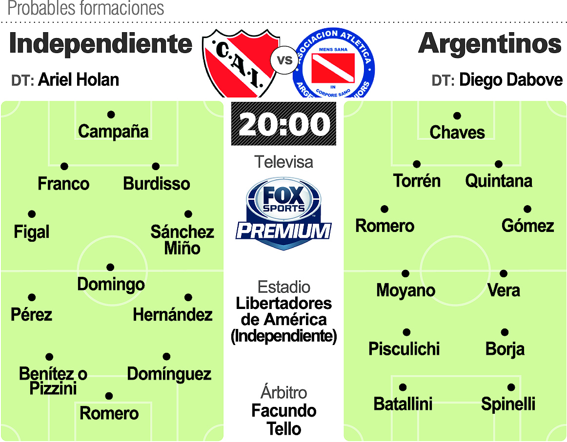 Independiente jugará hoy en su estadio ante Argentinos (20 horas, por Fox Sports Premium), buscando revertir el 3-2 en contra del partido de ida y el bajo nivel de juego exhibido, para así acceder a los octavos de final de la Copa de la Superliga, instancia en la cual enfrentaría a San Lorenzo.
