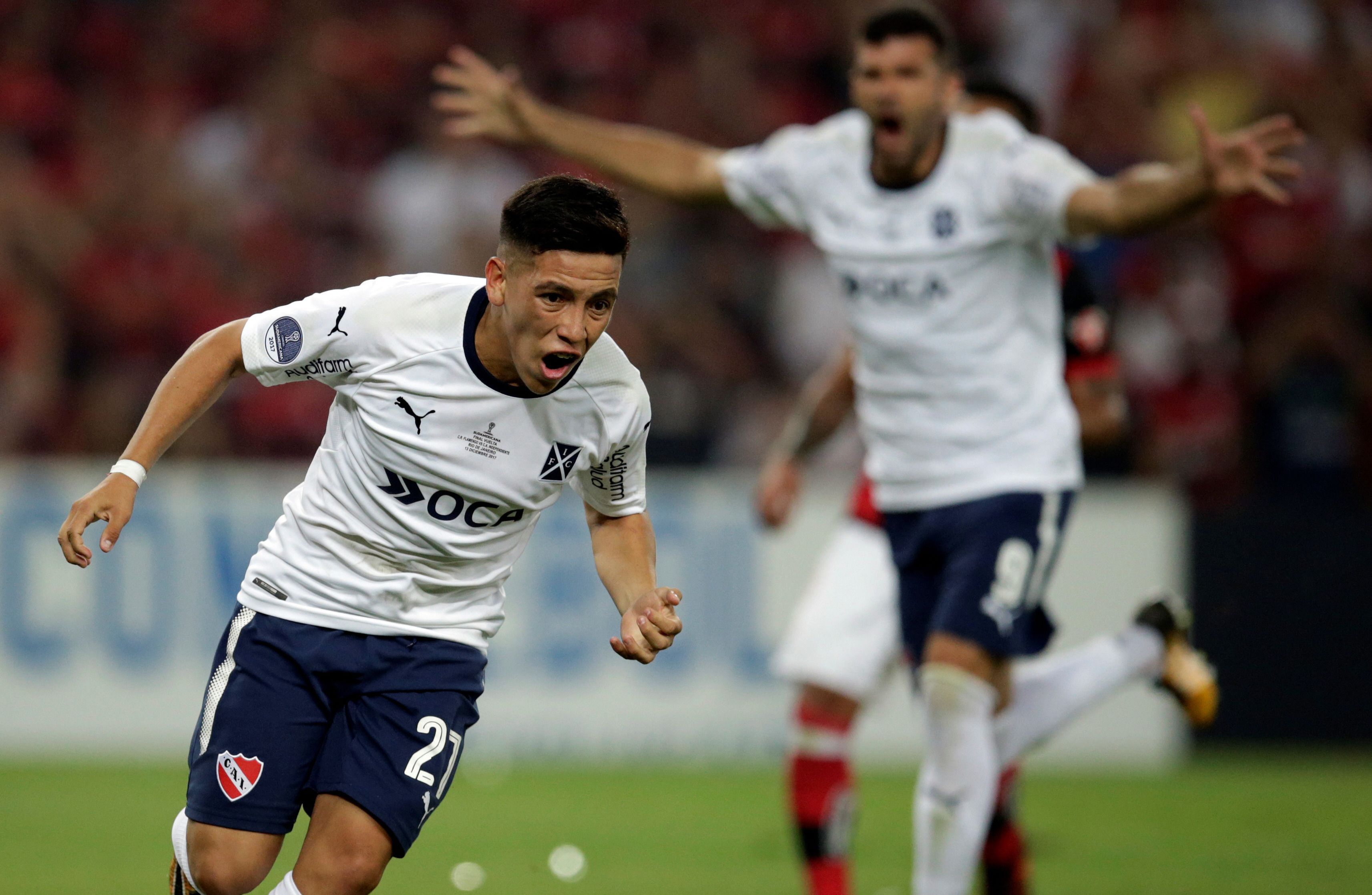 Festeja su obra. El juvenil Ezequiel Barco grita el gol con el alma. Era el empate Rojo ante Flamengo en el mítico Maracaná. El resultado no cambiaría hasta el final y por eso Independiente levantó una nueva Copa.
