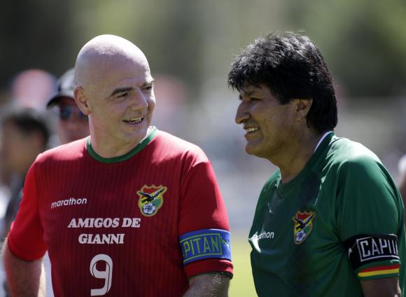 Entretanto, el elenco de Morales estuvo compuesto por sus escoltas policiales y por ex jugadores de la selección boliviana que logró la clasificación al Mundial de Estados Unidos 1994, entre ellos, Marco Antonio ’El Diablo’ Etcheverry y el mítico capitán de la Verde Carlos Borja.‘Con hechos concretos vamos a demostrar que estamos aquí no por nosotros o por nuestros intereses, sino por el interés exclusivo del fútbol‘, sostuvo Infantino en la conferencia de prensa previa al choque.