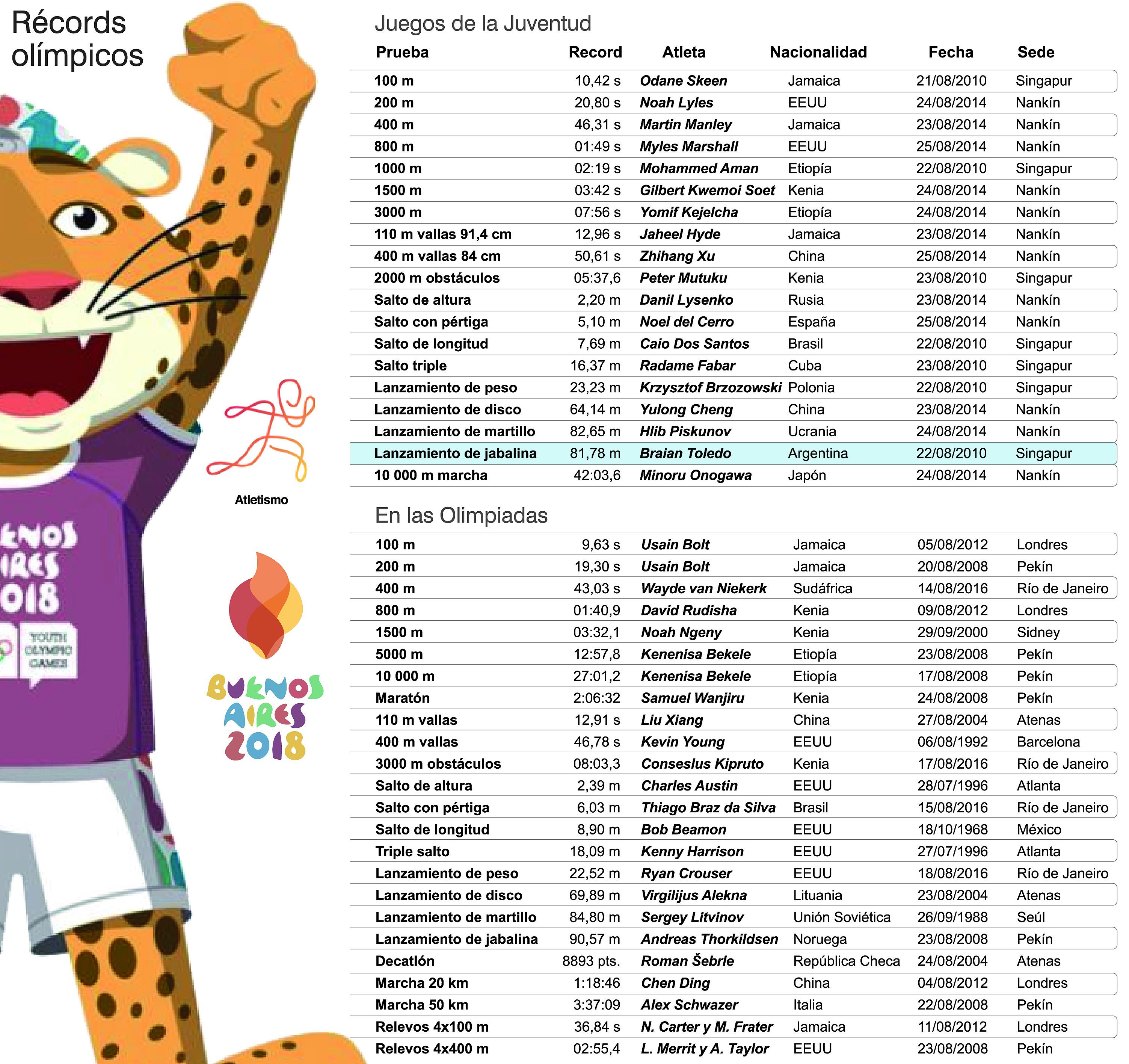 [Infografía] Conocé los récords históricos de los Juegos Olímpicos de la Juventud