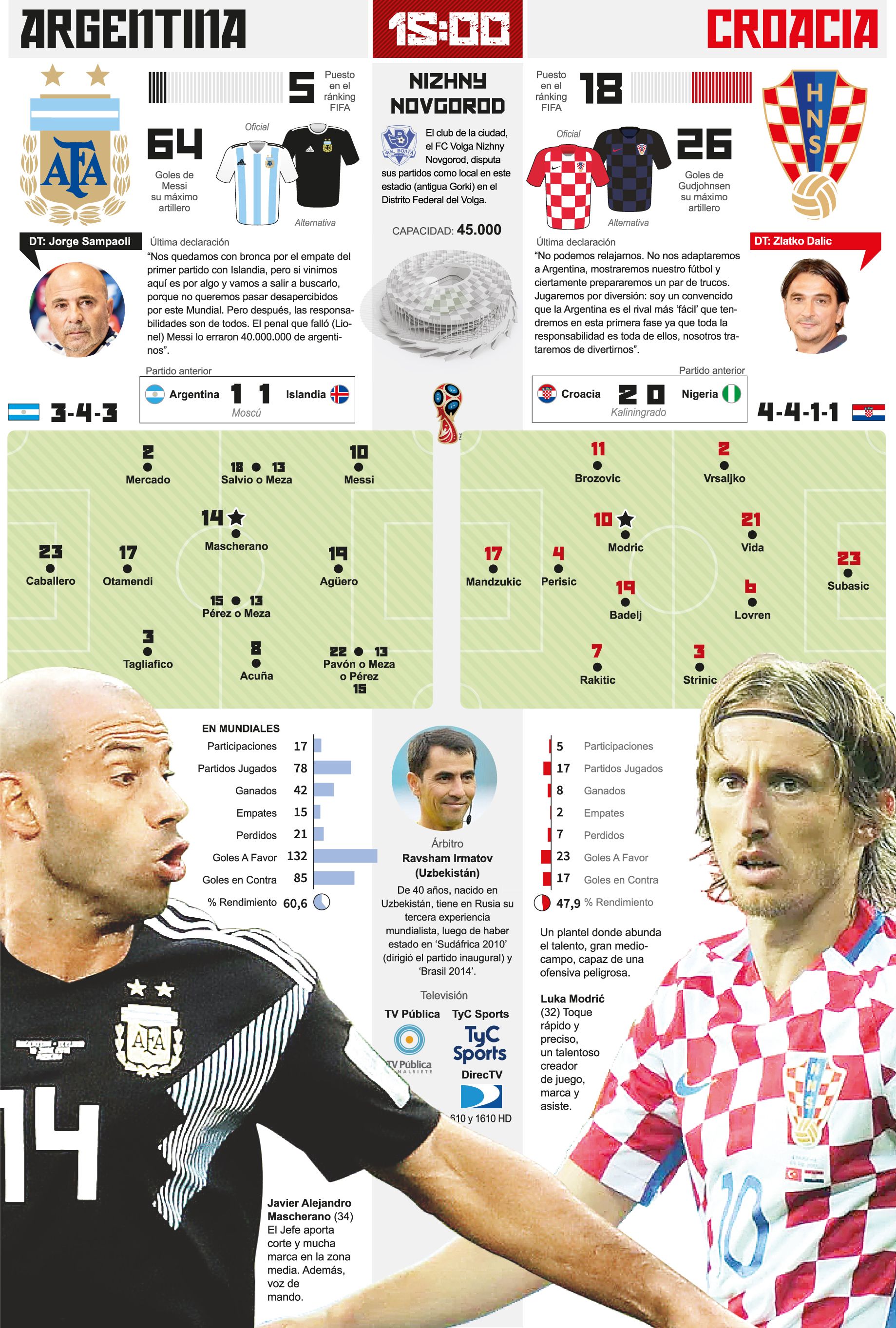 [Infografía] El detalle de las probables formaciones para Argentina -Croacia