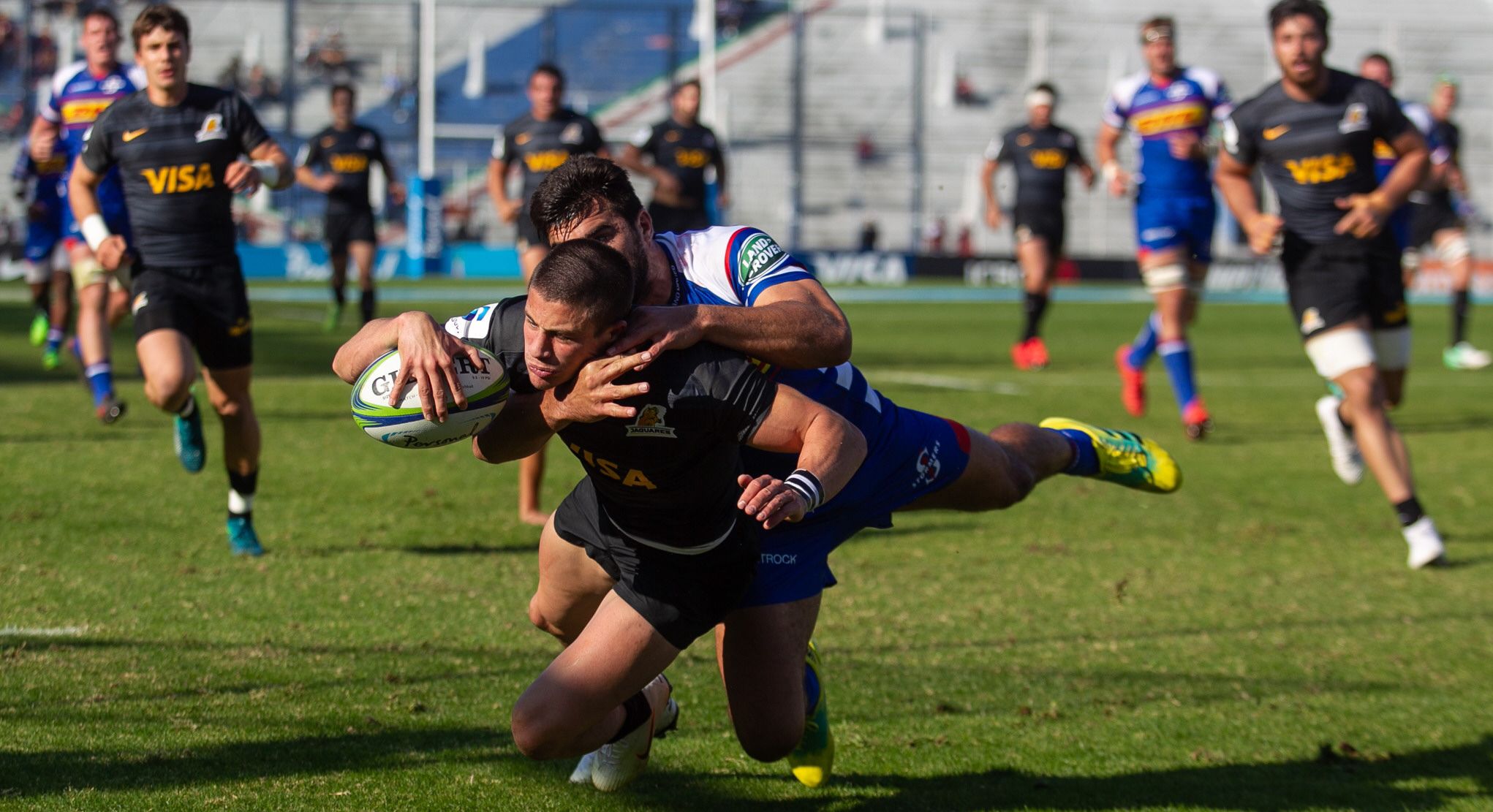 Con récord. Bautista Delguy vuela al try en la última presentación de Jaguares, con victoria ante Stormers. Fue el séptimo triunfo seguido de la franquicia, que hoy puede hacer historia y quedar entre los ocho mejores del Súper Rugby.