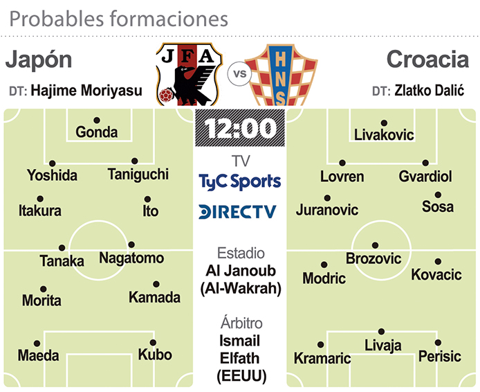 Japón, que dio la sorpresa en el Grupo E tras eliminar a Alemania y ganarle a España para ser primero, quiere seguir hoy (desde las 12, hora argentina) con las hazañas frente al actual subcampeón Croacia, en un cruce que definirá el rival del partido de Brasil y Corea del Sur para cuartos de final.