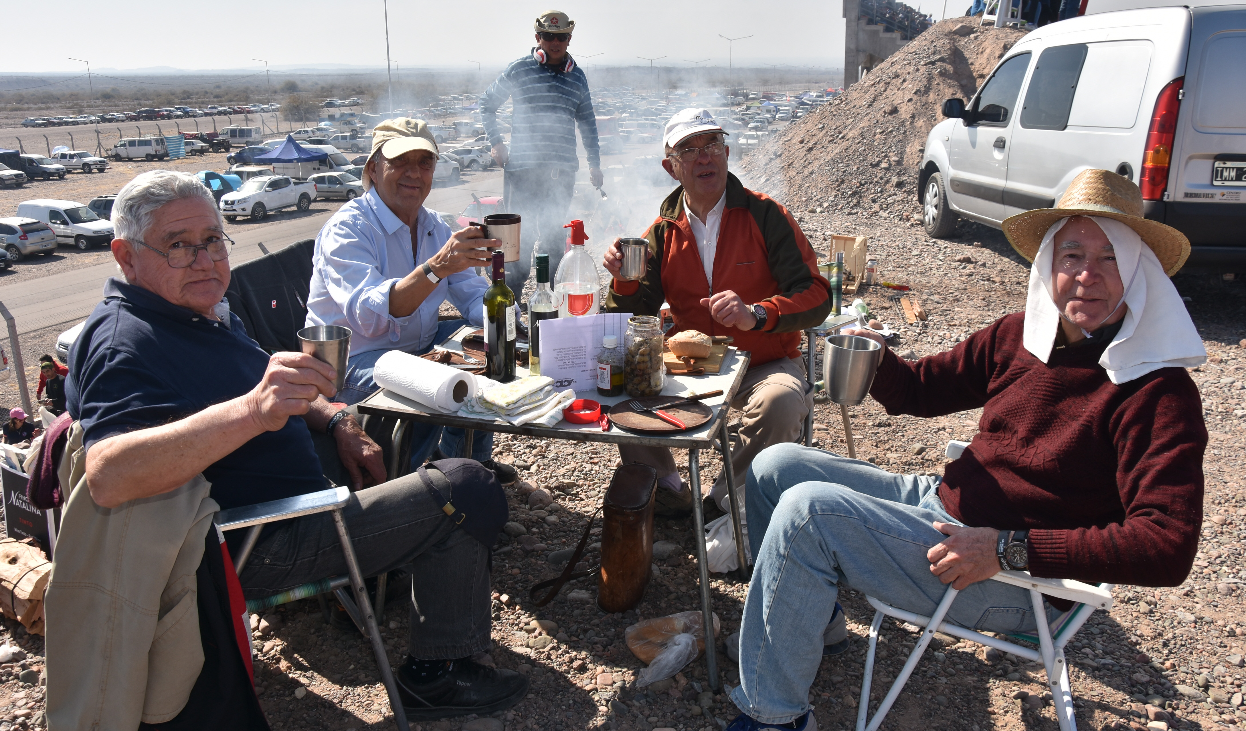 Fernando y Gustavo Mercado son de Pocito. Facundo, Tomás, Maico y Efrain Mercado son oriundos de La Rioja. El grupo llegó a acampar antenoche al Villicum y a pesar de tener el mismo apellido no son familiares. Es que por esas casualidades del destino se conocieron entre la multitud que llegó hasta Albardón y formaron una grata amistad. Al grupo de los Mercado se unieron los mendocinos Fabián Paniello junto a Iván y Gonzalo Carmona. Todos llegaron el sábado y ayer previo al momento de largar la final del TC ya habían compartido varios asados, mientras en la parrilla estaba casi listo el último que serviría de almuerzo. Todos se manifestaron conformes con la organización y repartieron elogios para El Villicum.