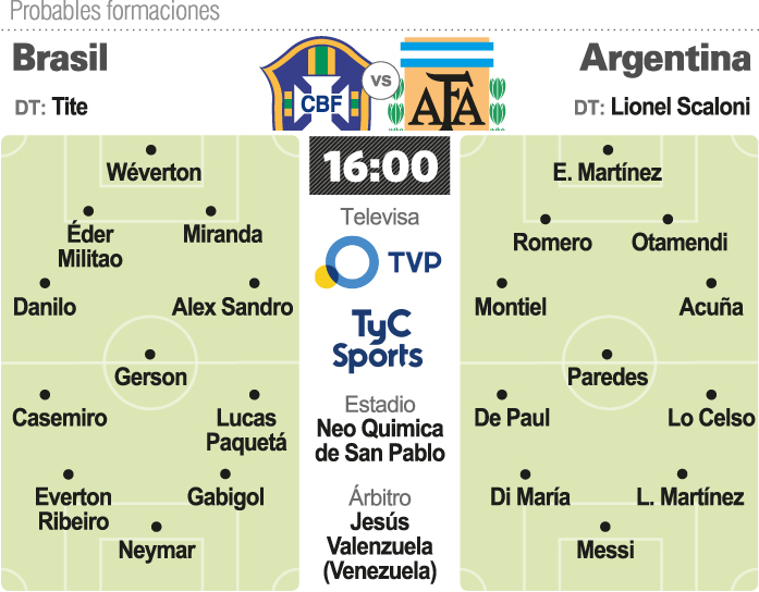 El lado preocupante de los argentinos es saber si la Agencia Nacional de Vigilancia Sanitaria de Brasil autoriza o no a que puedan jugar los cuatro jugadores que se desempeñan en el fútbol de Inglaterra (Lo Celso, "Dibu" Martínez, Buendía y "Cuti" Romero), quienes habrían falseado su declaración jurada para ingresar a Brasil.