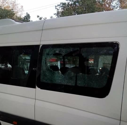 La combi detuvo su marcha en la Plaza de Desamparados y una ambulancia tuvo que asistir a los integrantes del plantel tricolor que sufrieron cortes.