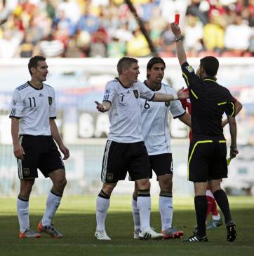 Klose, que disputa su cuarta Copa del Mundo, fue expulsado por el árbitro español Alberto Undiano Mallenco, que le mostró la segunda amarilla tras una falta de atrás a los 37 minutos del primer tiempo. Esta circunstancia obligó a que Alemania disputara todo el segundo tiempo en inferioridad numérica.