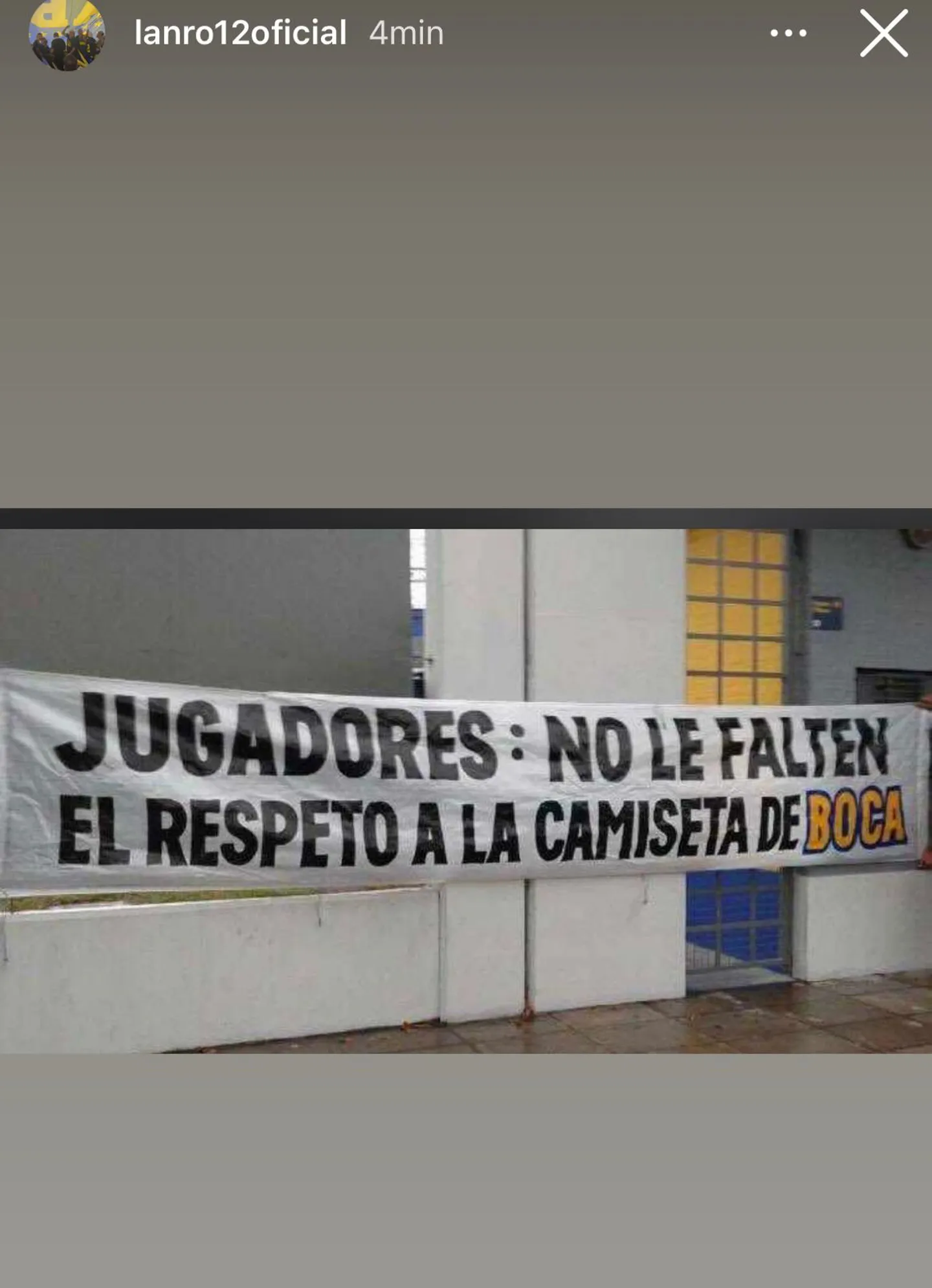 La barra brava de Boca posteó una amenaza en su cuenta de Instagram, después de los malos resultados del equipo. En la imagen aparece una bandera con una clara consigna hacia los jugadores: “No le falten el respeto a la camiseta”.