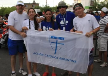 Franco Cano, Ariel Castro, Franco Leyria, Marina Leiva y Karen Leyria, cinco jóvenes del grupo de Acción Católica de la parroquia de Santa Bárbara, de Pocito, recorren los distintos puntos poblados por donde pasa la Vuelta conversando con los aficionados y repartiendo un tríptico en el que se resalta la importancia de la vida en familia (En familia nuestra vida es más).