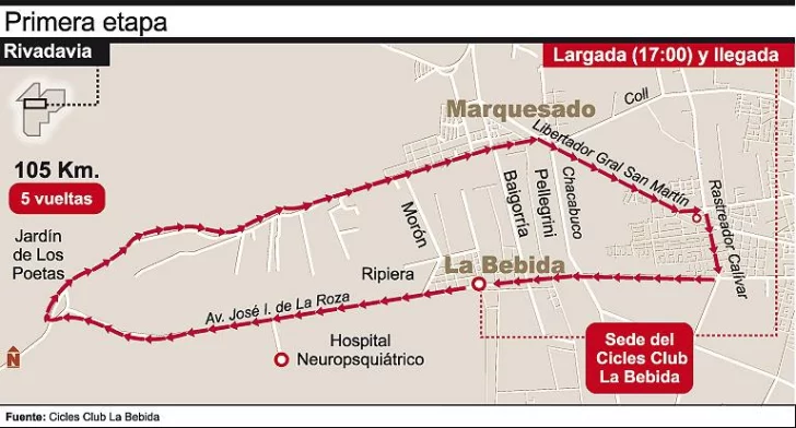 Hoy, a las 17 se realizará la etapa de apertura que tendrá 105 kilómetros y, con largada y llegada en la sede del club, pasará por el Jardín de los Poetas y extenderá su viaje por Av. Libertador General San Martín hasta calle Rastreador Calivar, por donde se virará (al Sur) hasta empalmar Av. Ignacio de La Roza y completar el recorrido. Serán cinco giros, teniendo cada vuelta 17 kilómetros de extensión.