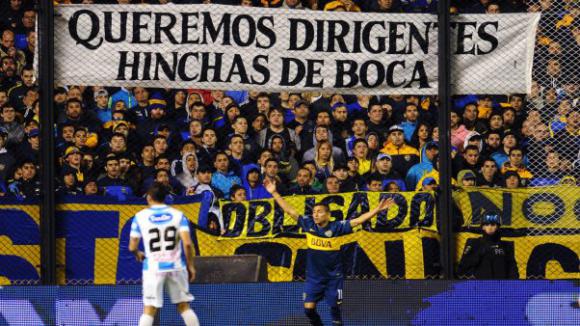 Buenos Aires, 25 de agosto.- Los simpatizantes de Boca reaccionaron contra la dirigencia que encabeza el Presidente Daniel Angelici. En medio de la inesperada derrota frente a Atlético de Rafaela, los fanáticos colgaron una bandera con la leyenda "Queremos dirigentes hinchas de Boca".