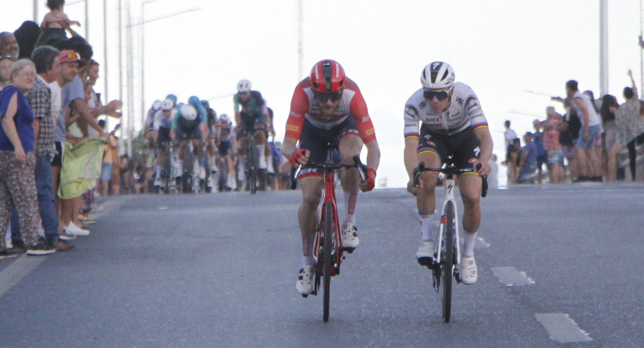 El intento. Evenepoel y Quinn Simmons intentaron la hazaña. Remco, de hecho, por momentos tuvo la gloria, hasta que el pelotón le dio caza.