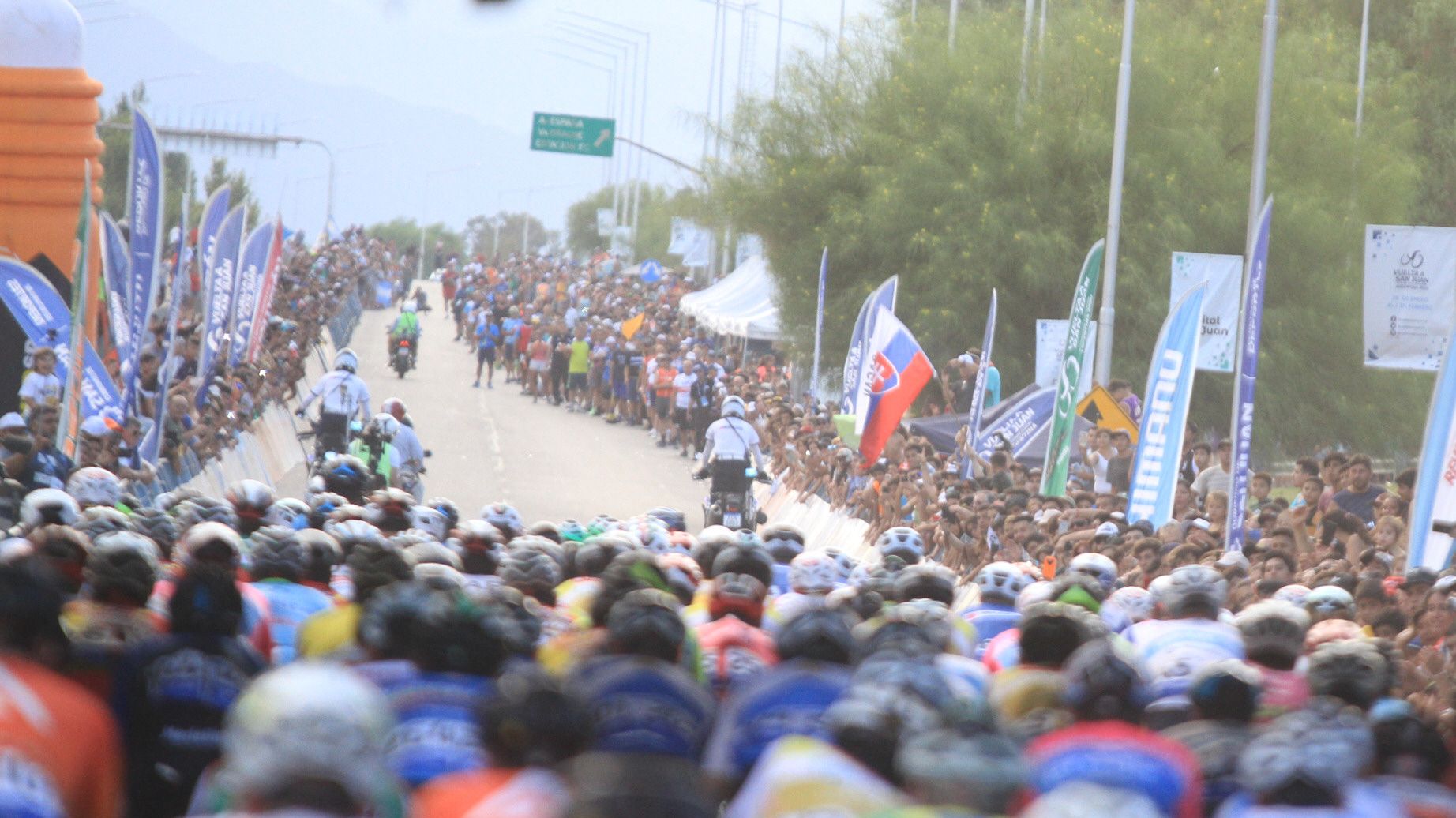 La cantidad, variedad y tamaño de las banderas fue otro aspecto que fue imposible pasar desapercibido. En tanto que fue tal la cantidad de público, que en las zonas donde no hubo vallado los espectadores formaron verdaderos embudos humanos frente al paso de los competidores.