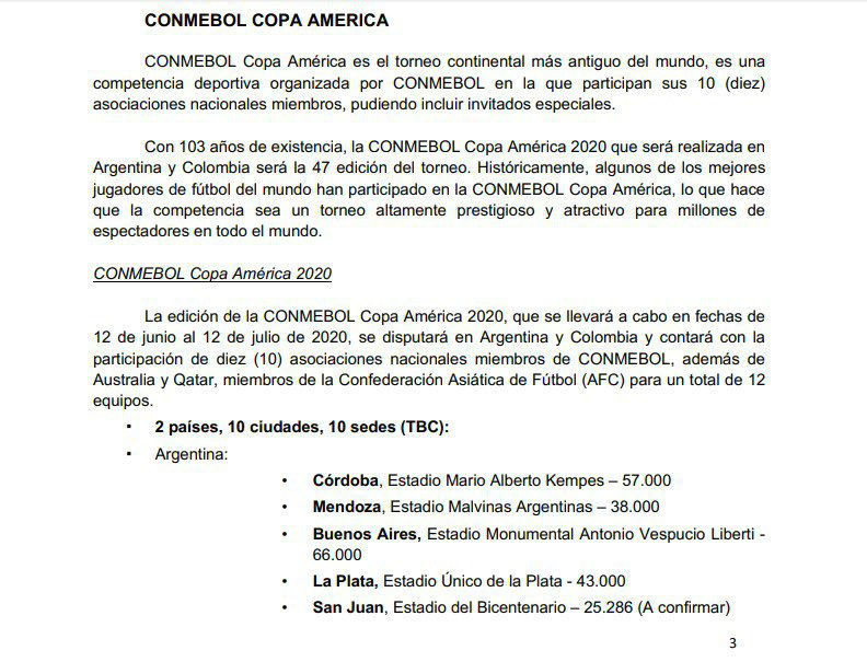 La Conmebol dio a conocer los estadios que formarán parte de la Copa Amércia 2020 del 12 de junio al 12 de julio, que de manera conjunta organizarán Argentina y Colombia.