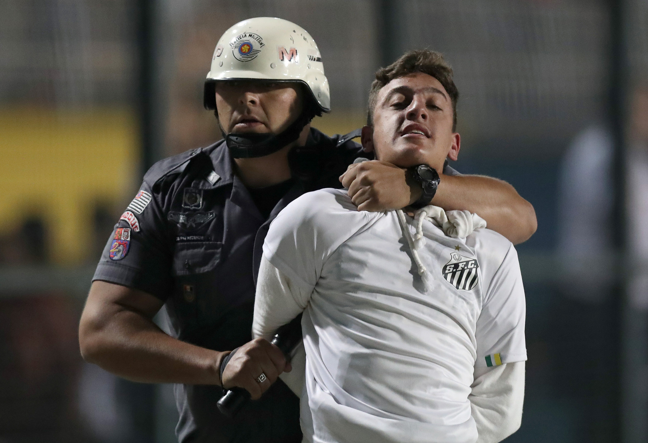Actuó rápido. Los hinchas brasileños intentaron invadir el campo de juego, pero la policía local actuó rápido, incluso reprimiendo a los revoltosos. Lamentable.