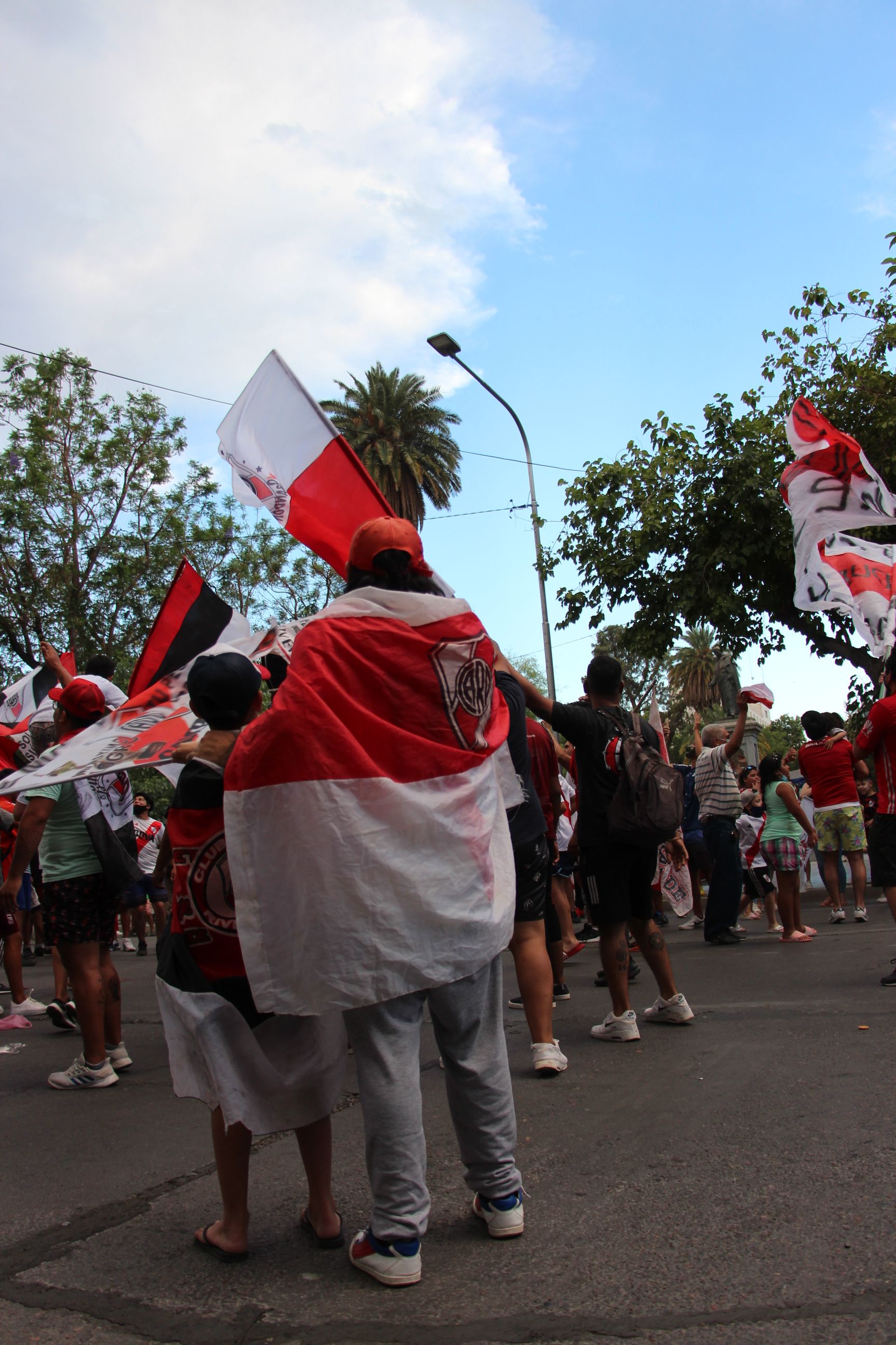 El segundo aniversario de aquella conquista en Madrid del equipo del Muñeco Gallardo merecía ser festejada, aún en un escenario de pandemia que invita todavía a quedar en casa. La pasión por los colores, el rojo y el blanco en este caso, movilizó a cientos de sanjuaninos que se convocaron en la Plaza 25 para expresar esa alegría que provoca la ‘Copa Eterna’ como la bautizaron los hinchas del Millonario.