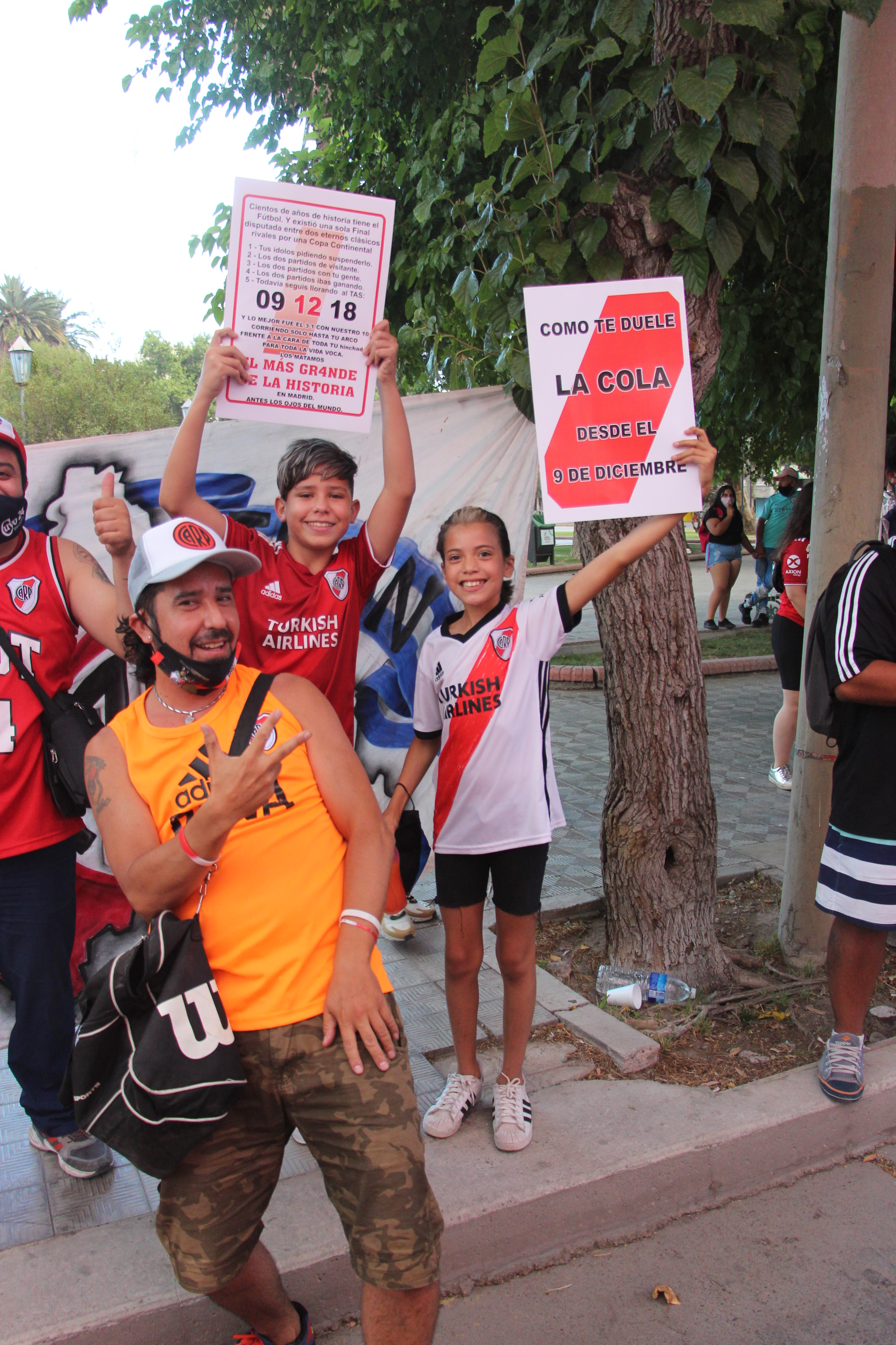 Los gritos de ‘guerra’ arengando la figura del ‘padre de la criatura’, de Marcelo Gallardo, se escucharon como un alarido. También hubo banderas y carteles con frases alusivas al DT y el rostro sonriente del Muñeco, aquel que devolvió a River a los primeros planos internacionales. Padres con sus hijos, gente grande que peina canas y hasta un bebé de días, todos hinchas de "El Más Grande", como se autorpovlaman sus hinchas.