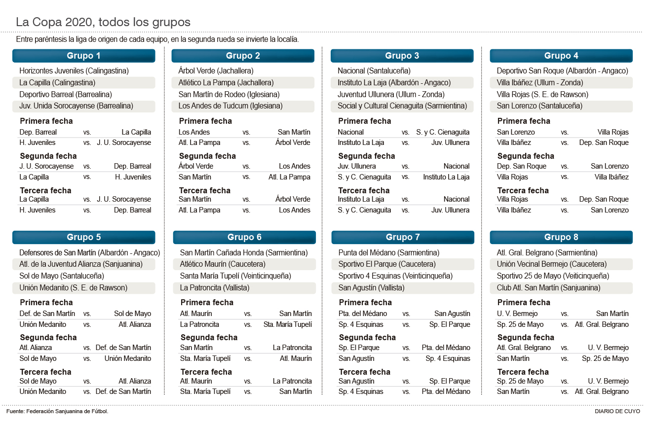 Quedan días, apenas un puñado de horas para que el mapa de San Juan se pinte fútbol con el comienzo de la Copa de Clubes Campeones-Copa DIARIO DE CUYO/San Juan Gobierno. Y esa fiesta que cada enero copa cada rincón de la provincia tendrá un anticipo más que especial mañana en el Del Bono Park, epicentro de muchos eventos de enorme calibre deportivo. Es que a partir de las 20 de este jueves, quedará presentada oficialmente la histórica edición 54 de la Copa que tendrá 32 equipos en competencia y la presencia de equipos capitalinos como San Martín y Atlético Alianza. Además, el trabajo simultáneo y coordinado entre la Secretaría de Deportes y la Federación Sanjuanina de Fútbol, permitirá que se anuncien los torneos Senior de la Copa y el Regional Federal Amateur que tendrá en competencia a siete equipos de la provincia buscando desde febrero una plaza en el Federal A.