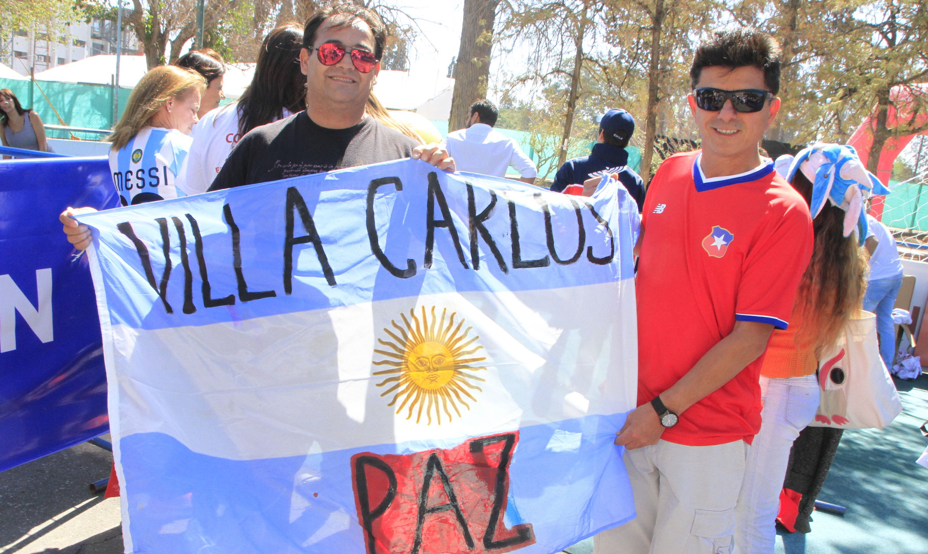 Miguel Leiva llegó desde Carlos Paz junto a su familia y pintó un trapo para la ocasión; en el Fan Fest conoció a Leonardo Sánchez, quien vino desde Santiago para alentar a su selección. Los dos posaron para la foto para demostrar la hermandad, aunque el cordobés reconoció una pica de rivalidad por el Mundial del 2014.