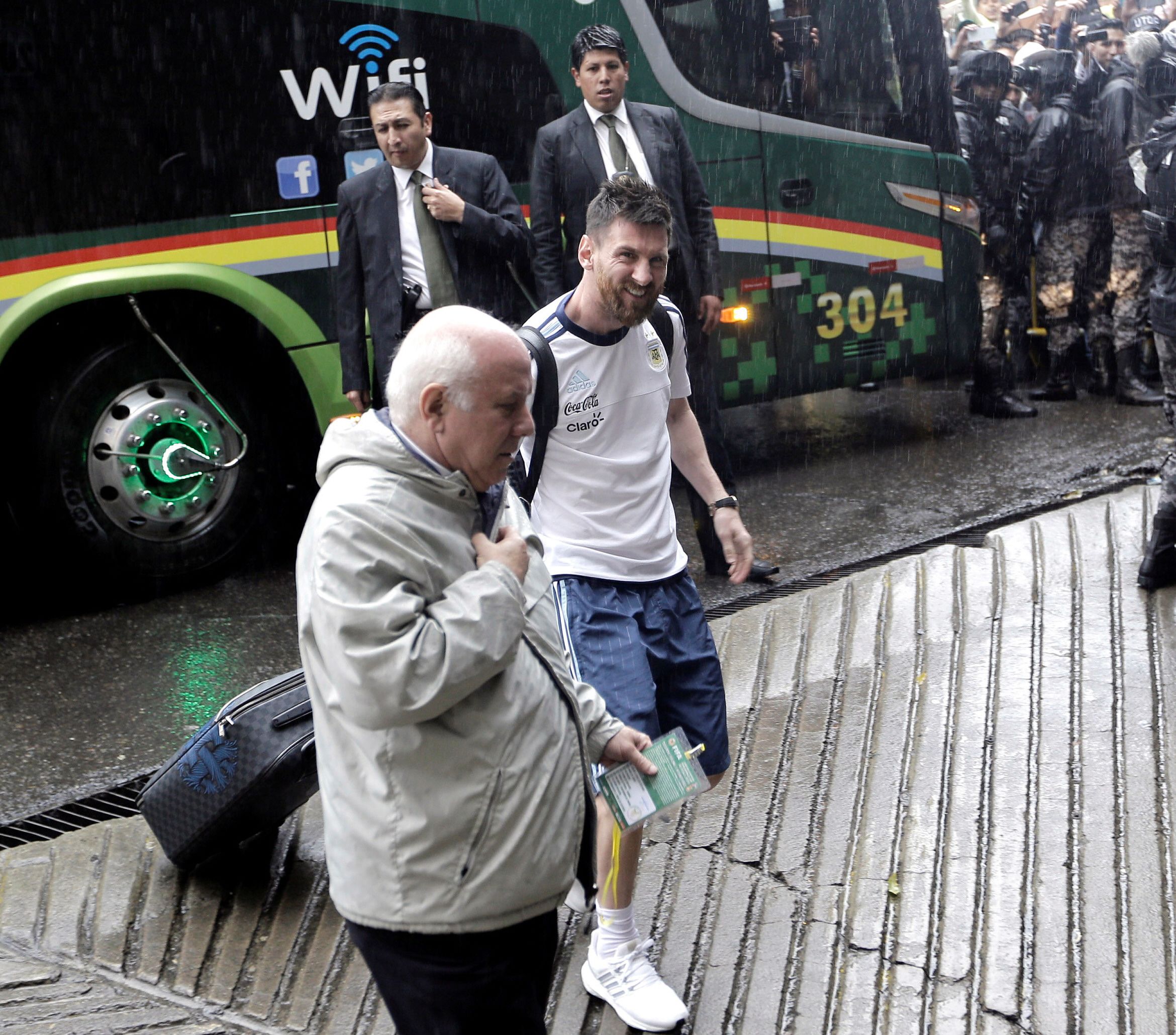 Presente igual. Lionel Messi acompañó al resto de sus compañeros en la altura de La Paz, aunque ya sabía que estaba suspendido por la FIFA.