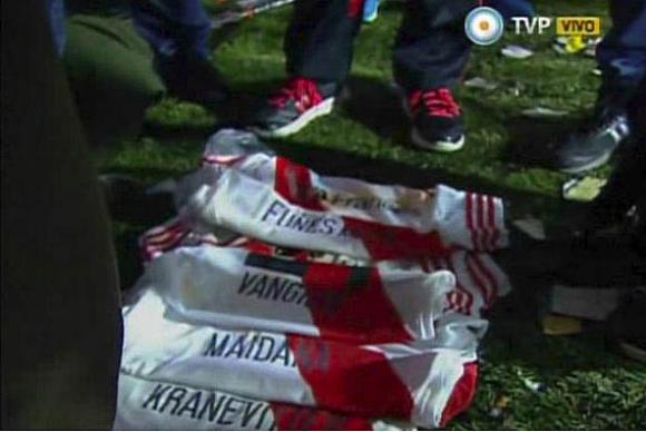 Según se informó, las casacas que se llevaron los agentes fueron las de Matías Kranevitter, Lionel Vangioni, Ramiro Funes Mori y Leonardo Ponzio, los más perjudicados.