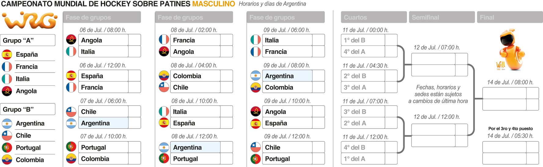 En tanto, ayer largó el Mundial con la victoria del campeón y local, España, 3-1 sobre Francia. Además, Italia superó 5-4 a Angola.
