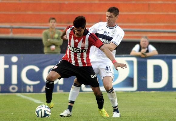 En el arranque del partido, Estudiantes comenzó mejor porque se adueñó del campo y la pelota, pero no creó peligro. Por el contrario, Gimnasia se abroqueló bien en el fondo, y de contraataque dispuso de las situaciones más claras. A los 4’, Jorge Rojas sacó un remate que sacó Agustín Silva y, a los 39’, un cabezazo de Fernández provocó otra atajada del arquero Pincharrata.
