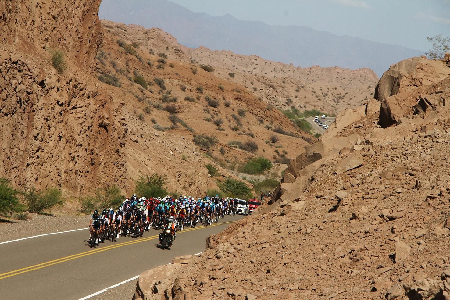 ADIÓS. Un aficionado de la zona saluda al pelotón multicolor, que ya deja atrás el Parque Ischigualasto. En ese momento lo hace a ritmo bastante liviano, sabiendo que podrán darle captura a los escapados que por entonces tenían más de cuatro minutos de ventaja sobre el grupo mayoritario.