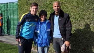 En su periplo de aprendizaje por Europa para su nueva función de director deportivo de Estudiantes, Sebastián Verón, asistió ayer al entrenamiento del Barcelona y se reencontró y fotografió junto a Lionel Messi. El tercero en la imagen es el hijo de la Bruja.