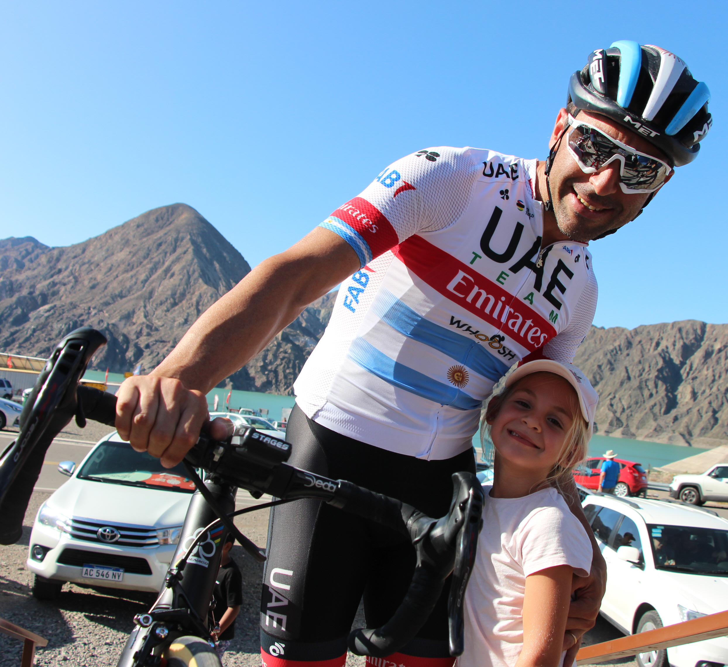 "El año pasado hice esta prueba junto al público y esta vez no podía perdérmelo sabiendo todo lo que representa Peter para la gente. Lo tomamos como entrenamiento sabiendo que mañana se viene una etapa dura como resultará la subida al Colorado. Llegamos bien con el equipo, esperemos seguir haciendo una buena Vuelta", comentó el "Atómico". Al llegar al parador Puerto Aventura en Punta Negra, lo recibió su hija Rebeca, quien corrió para abrazar a su papá tras el esfuerzo. También fueron acompañarlo en la Sagan Fondo sus padres Mabel y Omar, quienes se encuentran en San Juan siguiendo a Maxi y también a Mauro, ciclista de Puertas de Cuyo, y aprovechando para visitar al hijo menor, Adrián, quien ahora disfruta la Vuelta como espectador tras haber dejado la actividad recientemente. "Ya soy un sanjuanino más" expresó Maxi dejando en claro que quizás dentro de varios años seguirá el camino de sus hermanos.
