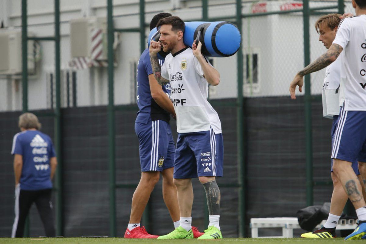 El estratega del conjunto nacional, durante un ejercicio defensivo, dio indicios del 11 que podría utilizar. Los nombres elegidos fueron los siguientes: Gabriel Mercado, Nicolás Otamendi, Marcos Rojo, Nicolás Tagliafico; Manuel Lanzini, Lucas Biglia, Maximiliano Meza, Ángel Di María; Lionel Messi; y Sergio Agüero.