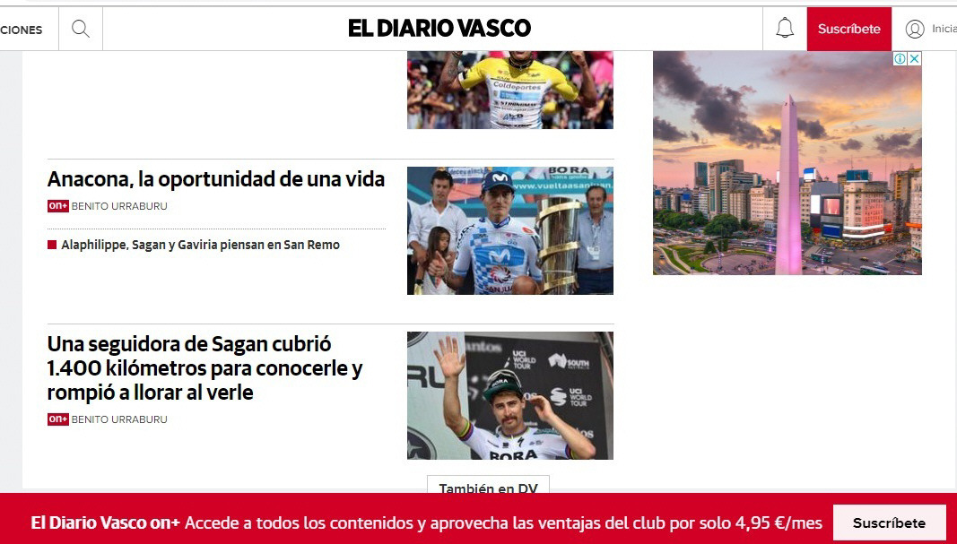 En tanto que en el Diario Vasco se contó, entre otras notas, cómo Peter Sagan cosechaba fanáticos en Sudamérica.