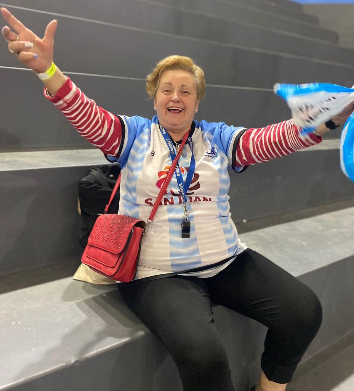 Siempre en el mismo lugar. En el segundo escalón de la zona Sur de la Platea Este del "Aldo Cantoni". Ahí, desde el domingo patentó su butaca Susana Gómez de Marchetti, "la abu de Giuli", como dice su camiseta personalizada. La mujer de 78 años, es la abuela materna de Giuliano Giuliani, capitán de la Selección argentina Sub-19 que viene siendo una de las principales figuras en los World Skate Games.