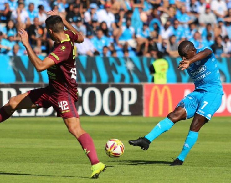 Goleador. Cuero, el delantero colombiano, ya sacó su remate para abrir el marcador en Córdoba. Belgrano ganó pero no le sirvió.