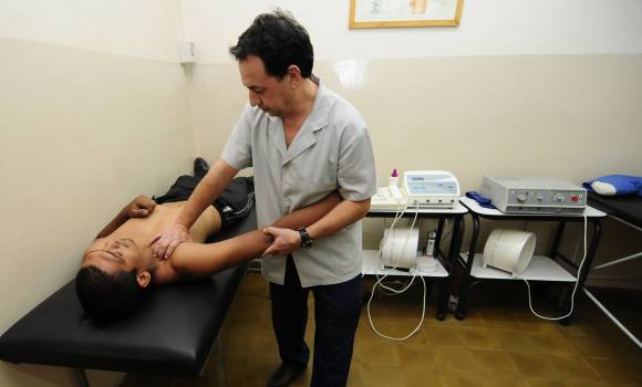 Inmediatamente el profesional comenzó a trabajar la zona afectada con magnetoterapia y crioterapia para atacar la inflamación del tendón. ‘Lo primero que debemos hacer es desinflamar la zona, lo que nos demandará entre 30 y 45 días‘, confió, quien recibe al púgil todas las tardes en su consultorio de Avenida Alem a metros de San Luis.