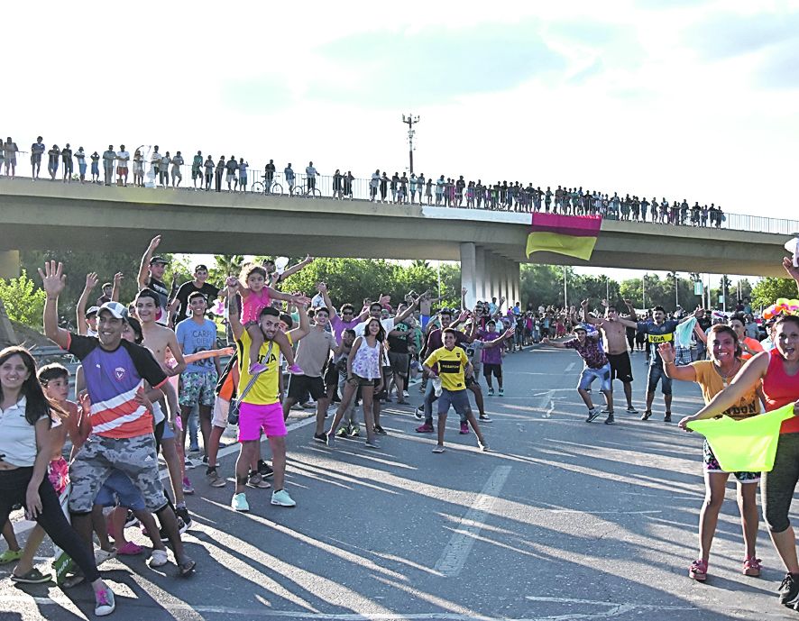 Otra gran postal de la jornada, y como es un clásico cada año, fueron las banderas identificatorias de los clubes sanjuaninos: San Martín, Desamparados, Unión, Del Bono y Atenas de Pocito, se mostraron con sus “trapos” en varios sectores de la Avenida y algunos hasta llevaron los redoblantes.