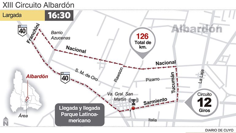 Luego de un año en el que algunas carreras pasaron pero ninguna empezó y terminó en Albardón, volverá esta tarde a disputarse el circuito que lleva el nombre del Departamento.