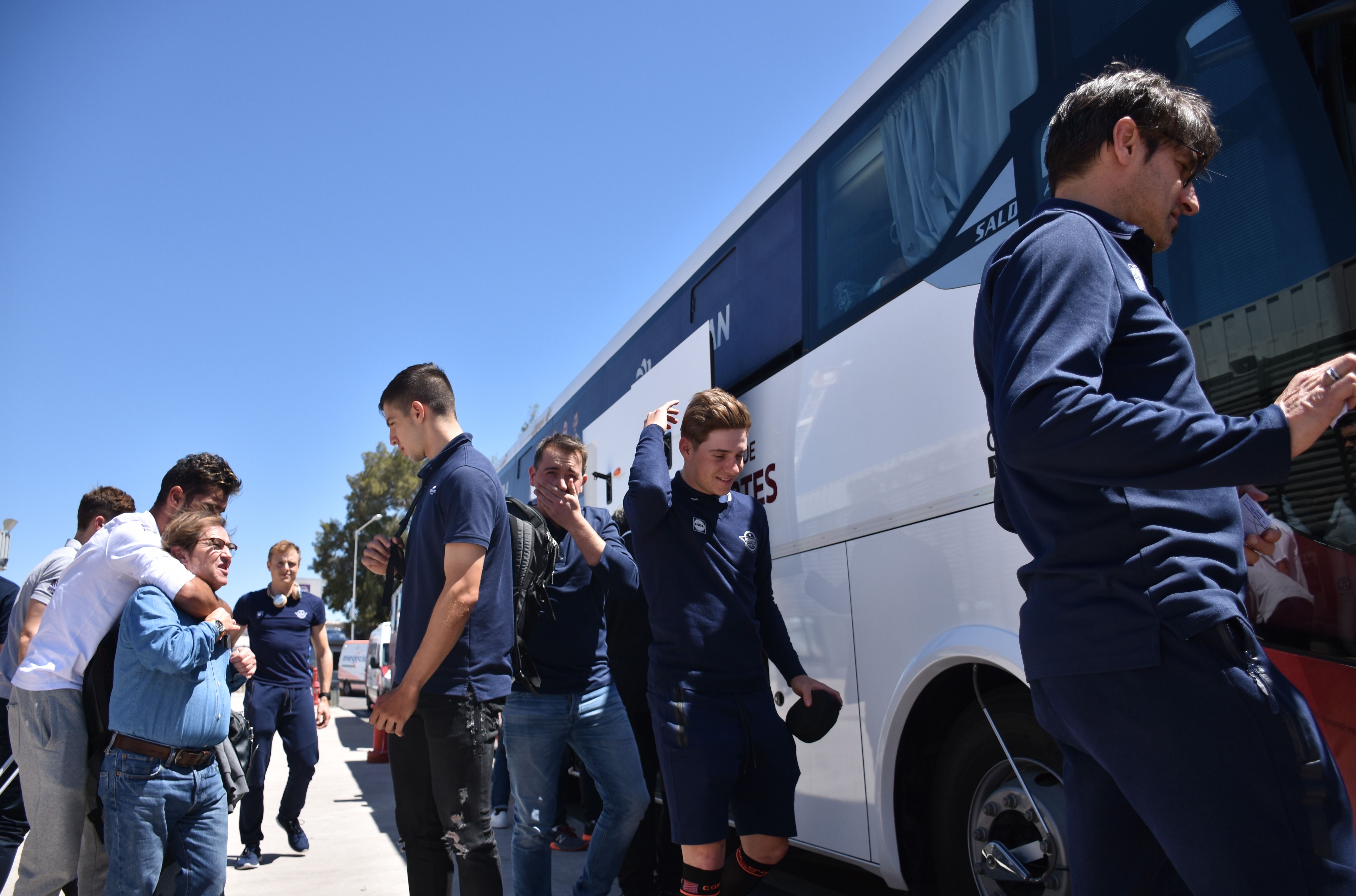 La fiesta de la 37 edición de la Vuelta comenzó a vivirse ayer, a media tarde, arribaron al aeropuerto Domingo Faustino Sarmiento cuatro escuadras de la categoría UCI World Tour. El equipo alemán BORA-Hansgroe, los conjuntos belgas, Deceunink Quick-Steep y la formación de bandera árabe UAE Emyrates.
