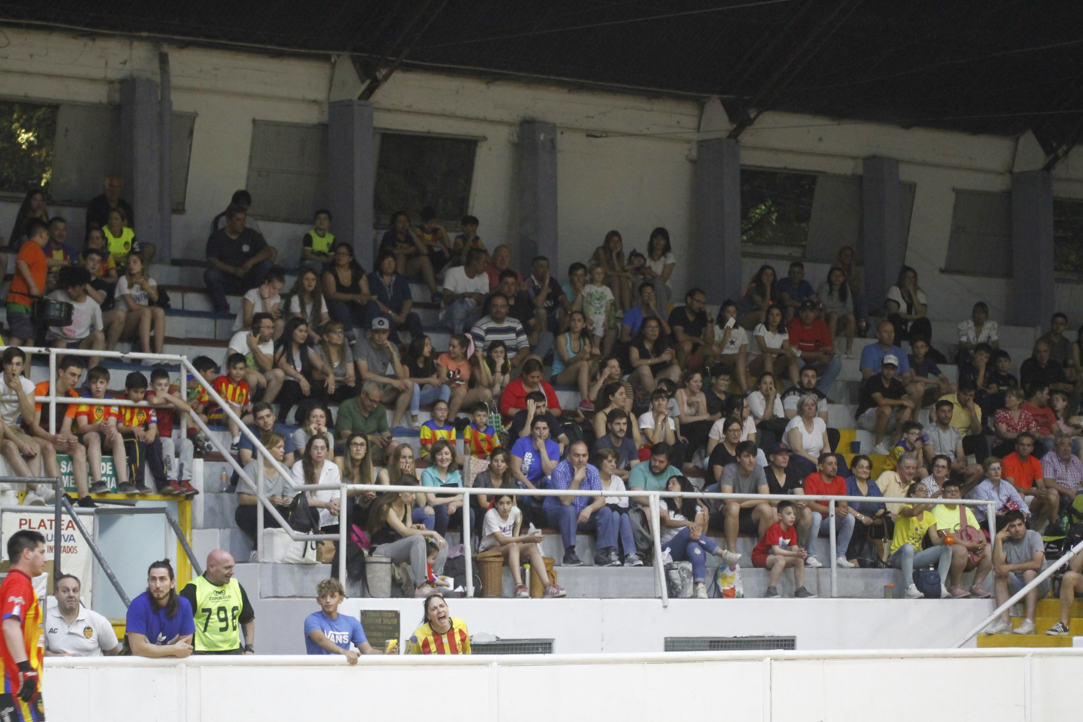 El estadio "Salvador Bonano", propiedad del club Andes Talleres, que está en el corazón de Godoy Cruz presentó anoche un marco acorde a la importancia de una final de Liga. Las dos hinchadas bien divididas (una cada una en las tribunas laterales, porque en las cabeceras no las hay) gritaron, alentaron y saltaron en los mejores momentos de sus equipos.