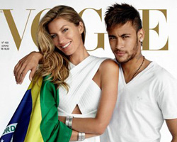 Con el comienzo del Mundial, hasta las revistas de moda quieren relacionar el tema en sus páginas. Luego que Cristiano Ronaldo posara desnudo con su su novia Irina Shayk para la edición española de la revista Vogue, la misma publicación en Brasil escogió a Neymar junto Gisele Bundchen, la top model mejor paga del momento.